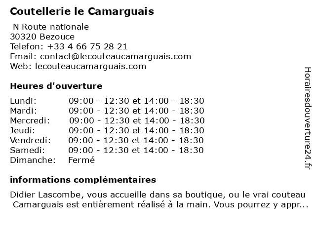 | Samedi | 09:00-12:30 et 14:00-18:30 |