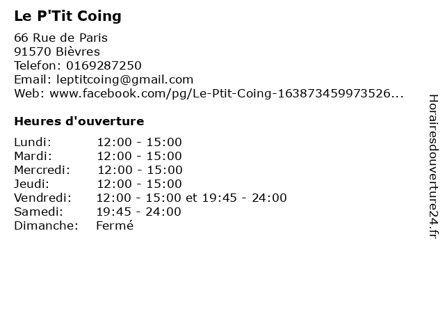 Termes de recherche pour Le P'Tit Coing:restauration, le, p'tit, restaurants, repas, tit, coing |