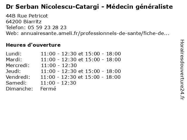 | Lundi | 11:00-12:30 et 15:00-18:00 |
