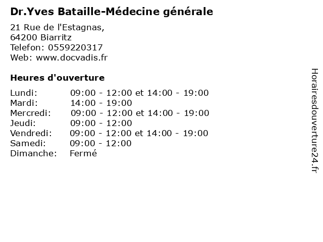 | Mercredi | 09:00-12:00 et 14:00-19:00 |
