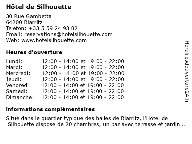 Lundi | 12:00-14:00 et 19:00-22:00 |