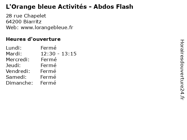 1 L'Orange bleue - Horaires d’ouverture (Distance: 0,00 km) 28 rue Chapelet, 64200 Biarritz bleue, d’ouverture, exercise, fitness, health, horaires, l'orange, outdoor, physical activities, sports 2 L'Orange bleue - Club Members (Distance: 0,00 km) 28 rue Chapelet, 64200 Biarritz bleue, club, exercise, fitness, health, l'orange, members, outdoor, physical activities, sports 3 L'Orange bleue Activités - Abdos Fessiers (Distance: 0,00 km) 28 rue Chapelet, 64200 Biarritz abdos, activités, bleue, exercise, fessiers, fitness, health, l'orange, outdoor, physical activities, sports 4 L'Orange bleue Activités - Step Deb. (Distance: 0,00 km) 28 rue Chapelet, 64200 Biarritz activités, bleue, deb., exercise, fitness, health, l'orange, outdoor, physical activities, sports, step 5 L'Orange bleue Activités - Yako Training (Distance: 0,00 km) 28 rue Chapelet, 64200 Biarritz activités, bleue, exercise, fitness, health, l'orange, outdoor, physical activities, sports, training, yako 6 L'Orange bleue Activités - Yako Attitude (Distance: 0,00 km) 28 rue Chapelet, 64200 Biarritz activités, attitude, bleue, exercise, fitness, health, l'orange, outdoor, physical activities, sports, yako |