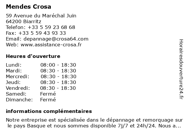 1 Mendes Crosa (Distance: 0,00 km)59 Avenue du Maréchal Juin, 64200 Biarritz crosa, mendes