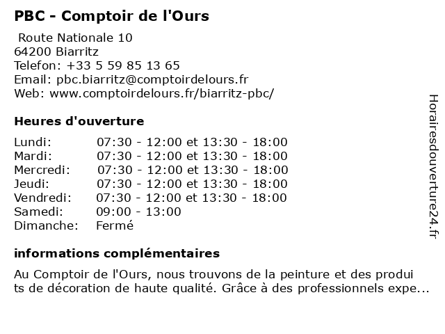 | Termes de recherche pour PBC - Comptoir de l'Ours:de, l'ours, comptoir, pbc |