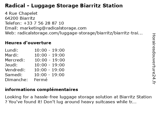 Termes de recherche pour Radical - Luggage Storage Biarritz Station:station, biarritz, radical, luggage, storage, luggage storage, luggage storage near me |