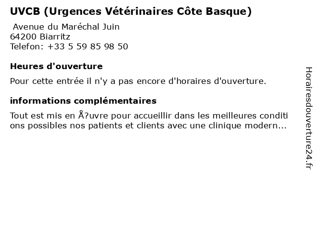 | Appeler UVCB (Urgences Vétérinaires Côte Basque) | |