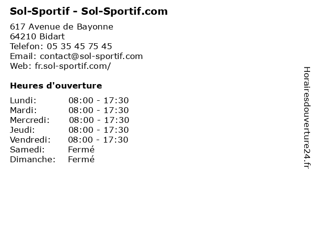| Lundi | 08:00-17:30 |