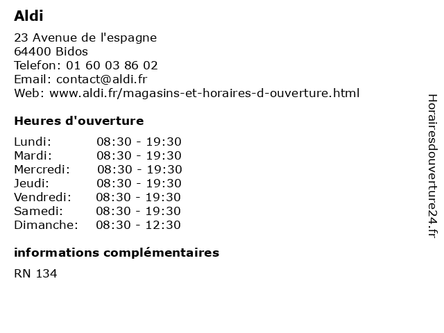 1 ALDI (Distance: 0,00 km) 23 Avenue d'Espagne, 64400 Bidos aldi, aldi près de moi, courses près de moi, magasin, magasin discount, magasin discount près de moi, supermarché, supermarché près de moi, supermarchés, supermarchés près de moi, épicerie, épicerie près de chez moi 2 Carrefour Express (Distance: 19,77 km) - Rue du Faubourg, 64190 Navarrenx alimentaire, alimentation, carrefour, courses, distributeur, express, hypermarché, supermarché, épicerie 3 Aldi (Distance: 20,93 km) - Rue Jean Jaurès, 64230 Lescar aldi, alimentaire, alimentation, courses, distributeur, distribution, grande, hypermarché, supermarché, supérette, épicerie 4 Grand Frais (Distance: 21,32 km) 88-90 avenue de Pau, 64230 Lescar frais, grand, hypermarché, la nourriture, les légumes, supermarché 5 Aldi (Distance: 21,42 km) 8 Place du Marché, 64150 Mourenx aldi, alimentaire, alimentation, courses, distributeur, distribution, grande, hypermarché, supermarché, supérette, épicerie 6 Géant Casino et Drive (Distance: 24,61 km) 21 Avenue Didier Daurat, 64140 Lons casino, drive, et, géant, hypermarché, marché, market |