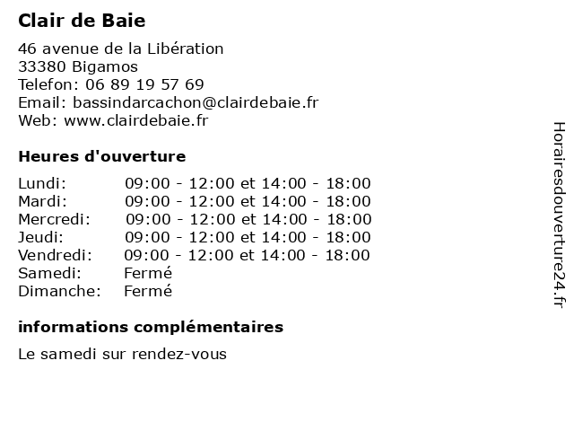 | Mercredi | 09:00-12:00 et 14:00-18:00 |