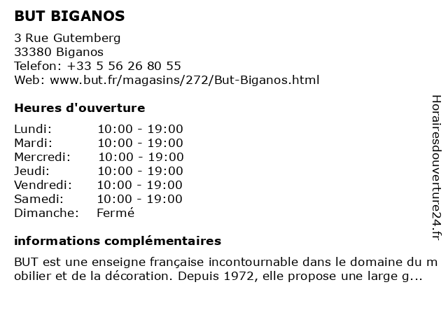 Termes de recherche pour BUT BIGANOS:biganos, but |