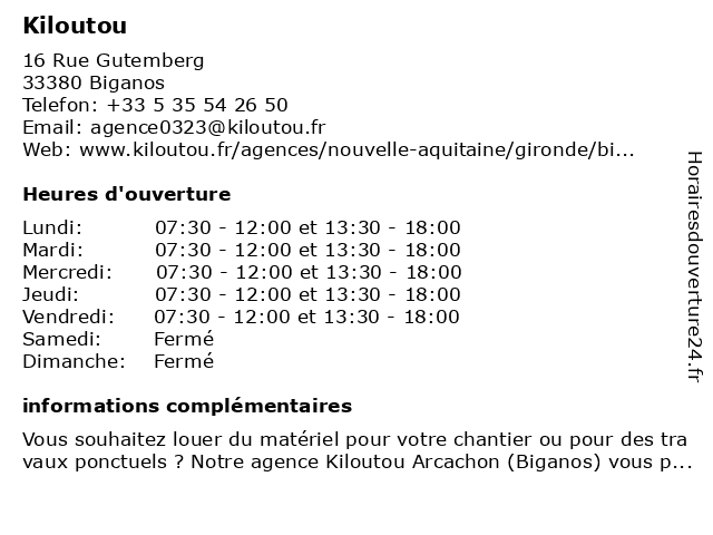 | Lundi | 07:30-12:00 et 13:30-18:00 |