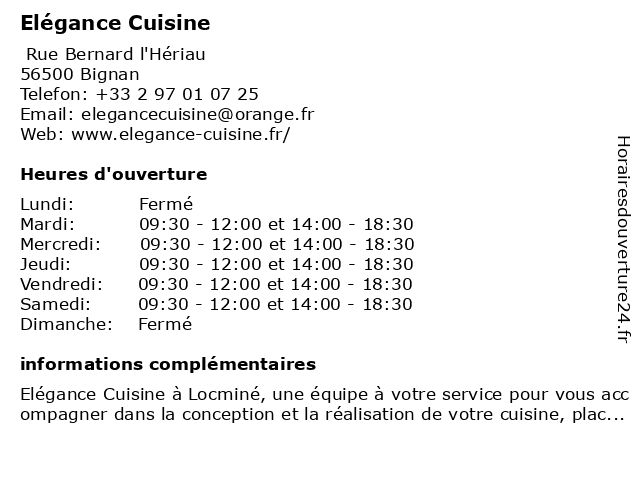 Horaires d'ouverture |