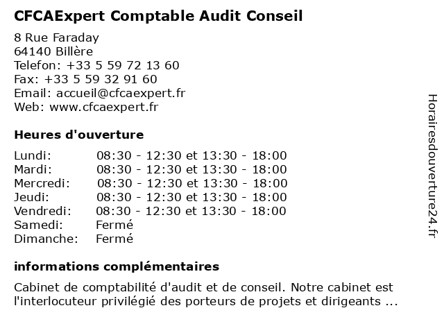 | Lundi | 08:30-12:30 et 13:30-18:00 |