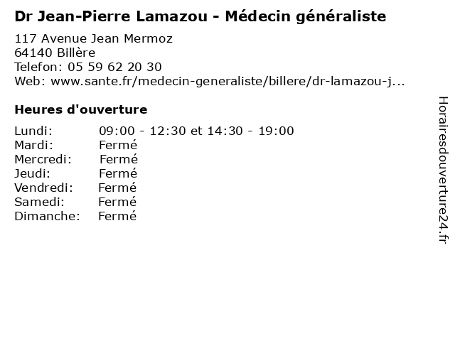 | Lundi | 09:00-12:30 et 14:30-19:00 |