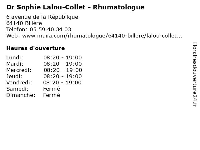 | Lundi | 08:20-19:00 |