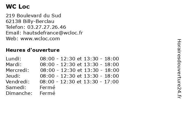 | Mercredi | 08:00-12:30 et 13:30-18:00 |