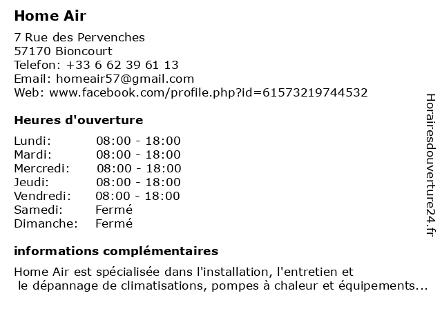 Horaires d'ouverture |