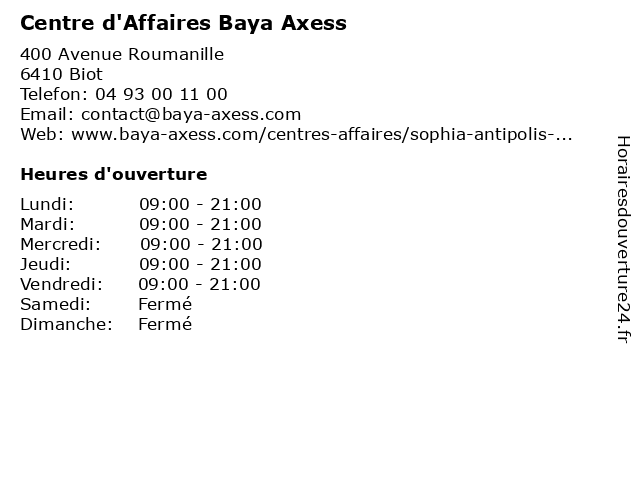 Horaires d'ouverture |