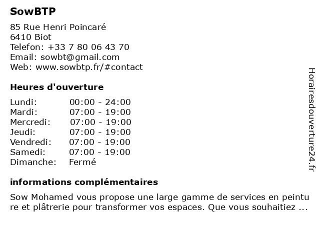 | Samedi | 07:00-19:00 |