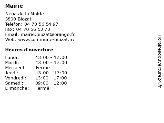 2 Mairie (Distance: 4,28 km) 35 route de Lyonne, 03110 Cognat-Lyonne administration, mairie, public, service 3 Mairie (Distance: 12,26 km) 1 place de la Mairie, 03110 Broût-Vernet administration, mairie, public, service 5 Mairie (Distance: 13,75 km) - Place de la Mairie, 03270 Hauterive administration, mairie, public, service 6 |