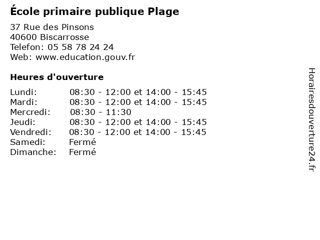 | Mardi | 08:30-12:00 et 14:00-15:45 |