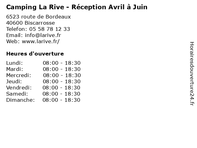 | Lundi | 08:00-18:30 |