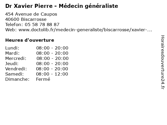 1 Xavier Votre Électricien (Distance: 1,73 km) 53 Rue Sanche de Pommiers, 40600 Biscarrosse electricité, générale, installation, service, société, votre, xavier, électricien 2 Poudens Xavier Michel (Distance: 2,42 km) 140 Rue Des Violettes, 40600 Biscarrosse michel, poudens, restaurants, xavier 3 Le Marche De La Goguette (Distance: 2,90 km) 480 Chemin De Navarrosse, 40600 Biscarrosse boulangeries, détail, fabien, goguette, marche, ribeiro, xavier 4 François-Xavier Herisse - Masseur-kinésithérapeute (Distance: 25,64 km) 21 Boulevard du Pyla, 33260 La Teste-de-Buch françois, herisse, kiné, kinésithérapeute, masseur, rééducation, soin, xavier 5 Dr Xavier Coutouly - Radiologue (Distance: 39,65 km) - Boulevard Javal, 33740 Arès consultation, coutouly, docteur, dr, med, médecin, radiologue, traitement, xavier 6 Dr Xavier Cazals - Radiologue (Distance: 39,65 km) - Boulevard Javal, 33740 Arès cazals, consultation, docteur, dr, med, médecin, radiologue, traitement, xavier |