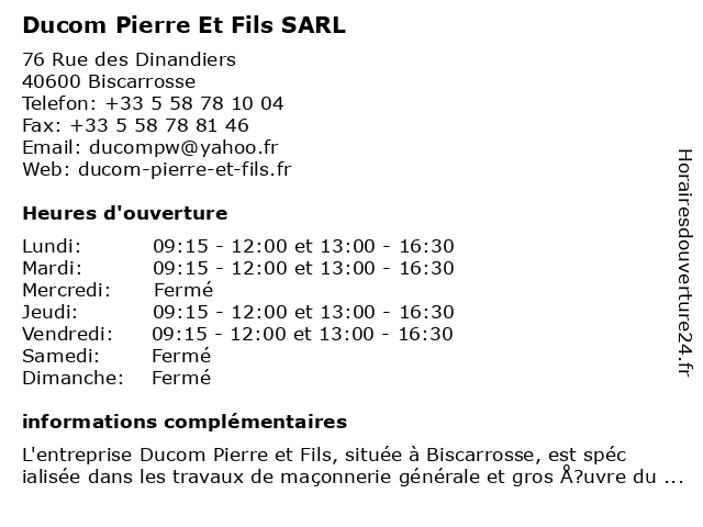 Termes de recherche pour Ducom Pierre Et Fils SARL:et, pierre, sarl, fils, ducom |