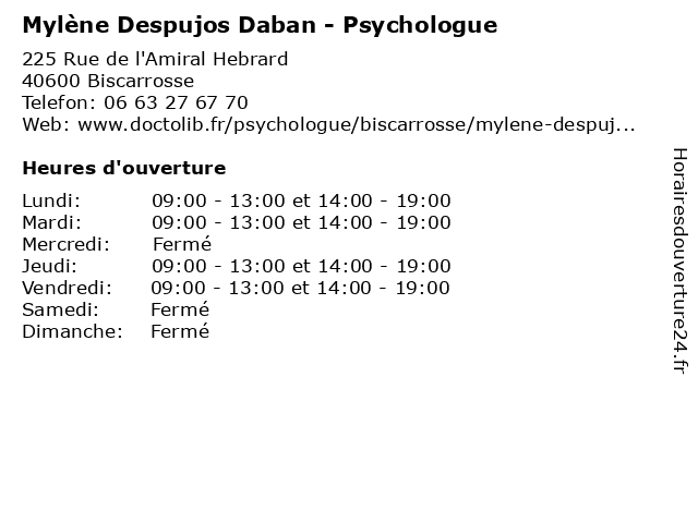 | Lundi | 09:00-13:00 et 14:00-19:00 |