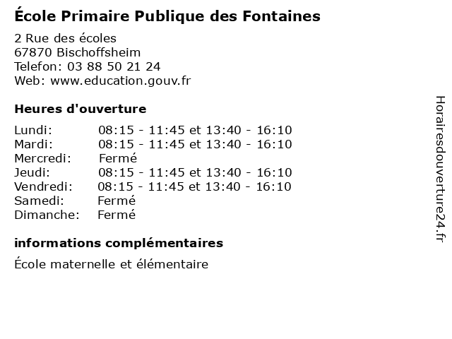 | Mardi | 08:15-11:45 et 13:40-16:10 |