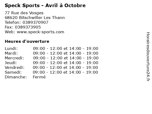 | Samedi | 09:00-12:00 et 14:00-19:00 |