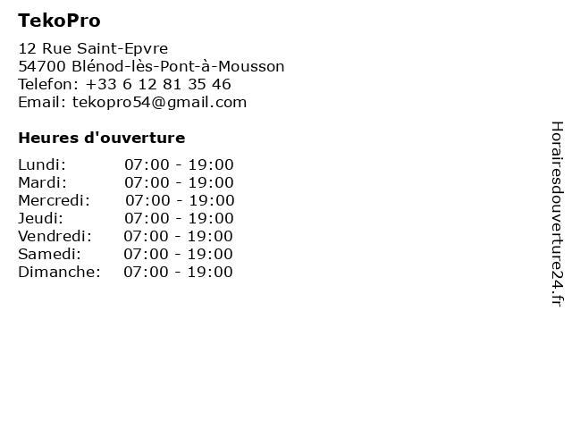 | Lundi | 07:00-19:00 |