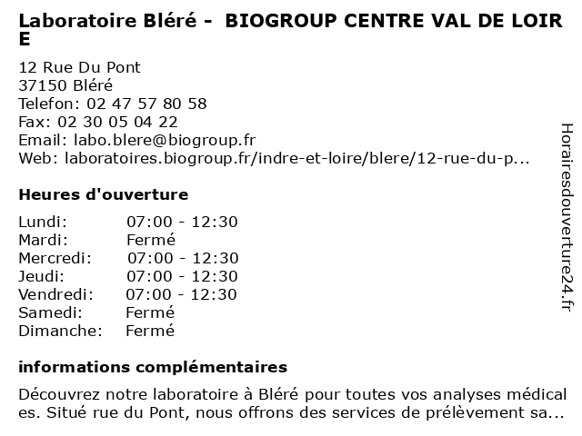 Termes de recherche pour Laboratoire Bléré - BIOGROUP CENTRE VAL DE LOIRE:val, de, loire, laboratoire, centre, bléré, biogroup, dépistages, laboratoire de diagnostic |