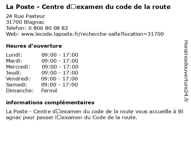 Termes de recherche pour La Poste - Centre d’examen du code de la route:poste, la, du, de, route, centre, code, d’examen, centre d'évaluation scolaire, école technique |