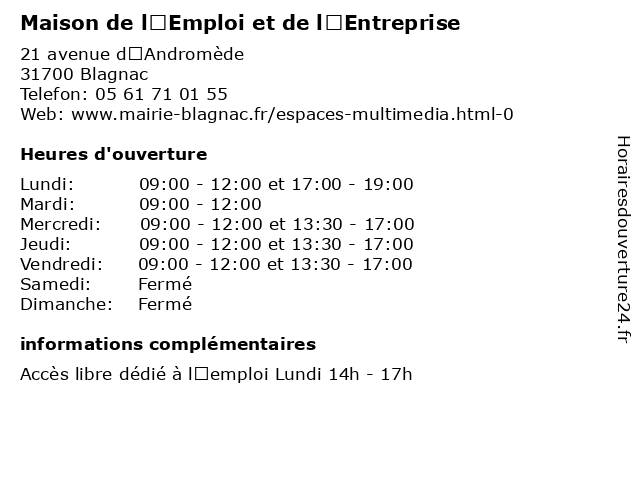 | Mercredi | 09:00-12:00 et 13:30-17:00 |