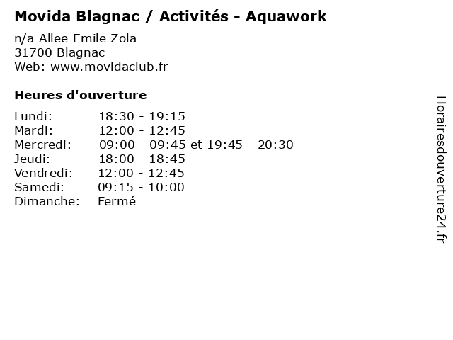 Termes de recherche pour Movida Blagnac / Activités - Aquawork:blagnac, fitness, sports, movida, outdoor, health, activités, exercise, physical activities, aquawork |
