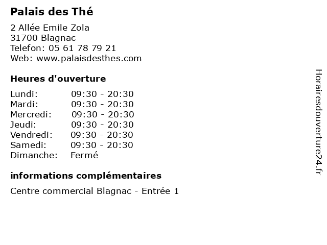 | Samedi | 09:30-20:30 |