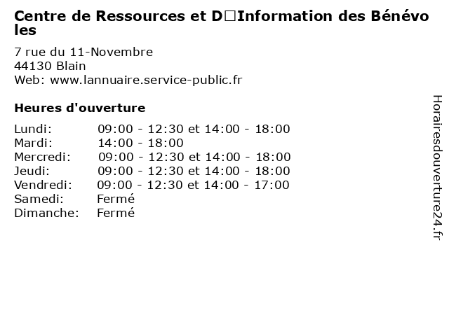 | Lundi | 09:00-12:30 et 14:00-18:00 |