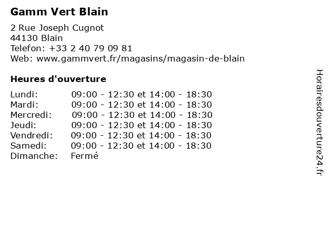 | Samedi | 09:00-12:30 et 14:00-18:30 |