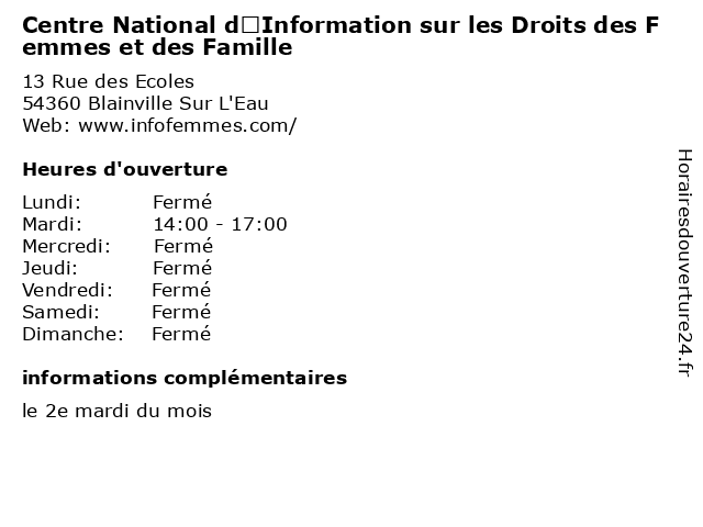 1 Centre National d’Information sur les Droits des Femmes et des Famille (Distance: 7,66 km) 4 Avenue Général de Gaulle, 54300 Luneville centre, des, droits, d’information, et, famille, femmes, les, national, publics, services, sur 2 Centre National d’Information sur les Droits des Femmes et des Famille (Distance: 8,04 km) 46 Rue Ernest Bichat, 54300 Luneville centre, des, droits, d’information, et, famille, femmes, les, national, publics, services, sur 3 Centre National d’Information sur les Droits des Femmes et des Famille (Distance: 10,25 km) 12 Rue Maurice Barres, 54830 Gerbeviller centre, des, droits, d’information, et, famille, femmes, les, national, publics, services, sur 4 Centre d'Information sur les Droits des Femmes et des Familles (CIDFF) (Distance: 7,88 km) 9 Rue René-Basset, 54300 Luneville administration, assoc, centre, cidff, d'information, des, droits, et, familles, femmes, les, services, services publics, sur 5 Point Info Famille (Distance: 12,62 km) 35 Grande Rue, 54370 Einville-au-Jard administration, assoc public, famille, info, mairie, point 6 Groupe SDI Ventilation National (Distance: 17,90 km) 11 Rue Jean Lamour, 54630 Richardménil filtration, groupe, national, sdi, ventilation, vmc |