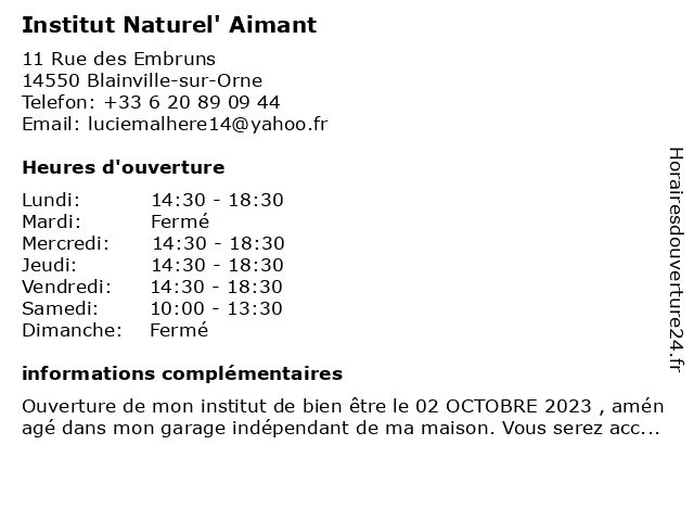 | Dimanche | Fermé |