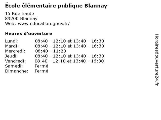 | Mardi | 08:40-12:10 et 13:40-16:30 |