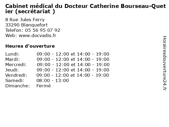 Termes de recherche pour Cabinet médical du Docteur Catherine Bourseau-Quetier (secrétariat ):catherine, du, cabinet, santé, medical, secretariat, docteur, médecins, consultation, bourseau, quetier |