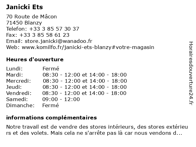 | Lundi | Fermé |