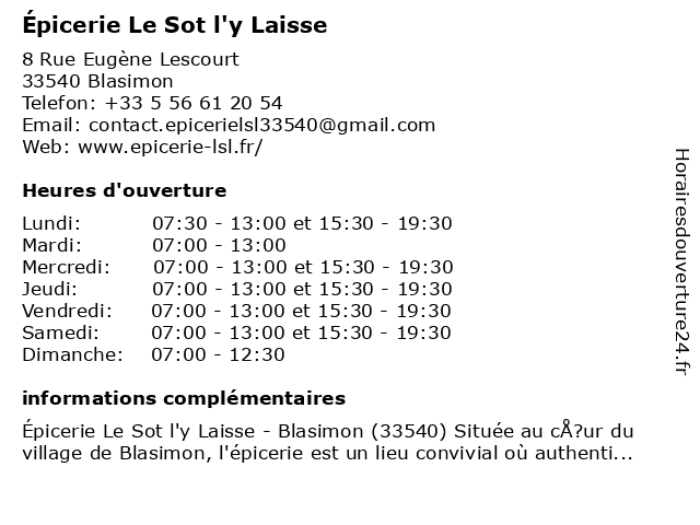 Termes de recherche pour Épicerie Le Sot l'y Laisse:le, épicerie, laisse, sot, l'y |