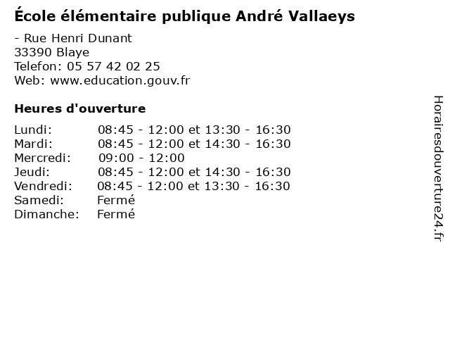 | Lundi | 08:45-12:00 et 13:30-16:30 |