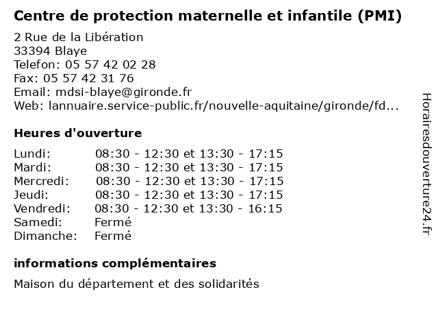 1 Centre de protection maternelle et infantile (PMI) (Distance: 10,58 km) 5 place du Maréchal-de-Lattre-de-Tassigny, 33250 Pauillac bébé, centre, de, et, infantile, infantille, information, maternelle, nouveau-né, pmi, protection, puéricultrice, pédiatre, vaccins 2 Centre de protection maternelle et infantile (PMI) (Distance: 14,70 km) 1 bis Rue André Audubert, 33480 Castelnau de Médoc administration, assoc, associations, aux, centre, d'information, de, des, dédié, et, greffe, infantile, information, local, locale, maternelle, mission, personnes, pmi, protection 3 Mairie de Guérin (Distance: 17,85 km) n/a Le Pin, 47250 Guérin administration, assoc, associations, aux, centre, d'information, de, des, dédié, et, greffe, guérin, infantile, information, local, locale, mairie, maternelle, mission, personnes 4 Centre de Protection Maternelle et Infantile (Distance: 26,11 km) 2 Rue Louis-Massina, 33440 Ambarès-et-Lagrave centre, conseils, de, et, infantile, maternelle, parents, pmi, protection, prévention, pédiatre 5 Centre de protection maternelle et infantile (PMI) (Distance: 29,73 km) n/a Rue du Stade, 33450 Saint Loubes administration, assoc, associations, aux, centre, d'information, de, des, dédié, et, greffe, infantile, information, local, locale, maternelle, mission, personnes, pmi, protection 6 Centre de protection maternelle et infantile (PMI) (Distance: 30,96 km) 63 Rue Camille-Godard, 33000 Bordeaux administration, assoc, associations, aux, centre, d'information, de, des, dédié, et, greffe, infantile, information, local, locale, maternelle, mission, personnes, pmi, protection |