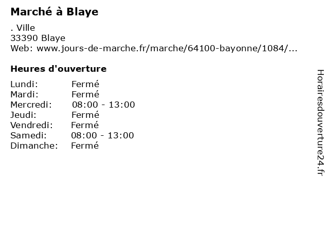 1 Marché à Cussac-Fort-Médoc (Distance: 0,00 km) . Ville, 33460 Cussac-Fort-Médoc cussac, fort, frutas, hortalizas, marché, mercado, médoc, verduras 2 Marché à Anglade (Distance: 6,43 km) . Ville, 33390 Anglade anglade, frutas, hortalizas, marché, mercado, verduras 3 Marché à Eyrans (Distance: 6,46 km) . Ville, 33390 Eyrans eyrans, frutas, hortalizas, marché, mercado, verduras 4 Marché à Saint-Laurent-Médoc (Distance: 7,46 km) . Ville, 33112 Saint-Laurent-Médoc frutas, hortalizas, laurent, marché, mercado, médoc, saint, verduras 5 Marché hebdomadaire à Pauillac (Distance: 10,59 km) . Place du Marché, 33250 Pauillac frutas, hebdomadaire, hortalizas, marché, mercado, pauillac, verduras 6 Marché à Pugnac (Distance: 10,80 km) . Village, 33710 Pugnac frutas, hortalizas, marché, mercado, pugnac, verduras |