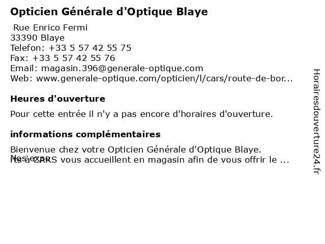 | Appeler Opticien Générale d'Optique Blaye | |