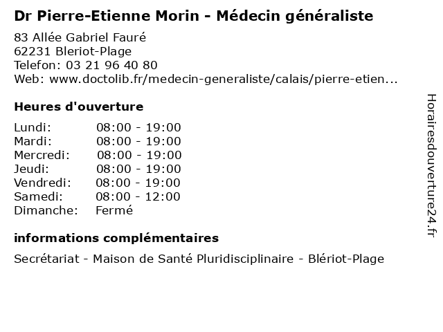 1 Dr Louis-Etienne Barron - Médecin généraliste - secrétariat (Distance: 10,50 km) 7 Boulevard Delannoy, 62340 Guines barron, consultation, docteur, dr, etienne, généraliste, louis, med, médecin, médecine, secrétariat, traitement 2 Dr Etienne Dubroeucq - Médecin généraliste (Distance: 25,36 km) 117 Rue Carnot, 62930 Wimereux docteur, dr, dubroeucq, etienne, generaliste, généraliste, medical, médecin, soin 3 Dr Etienne Boulenger - Chirurgien-dentiste (Distance: 26,41 km) 7 Rue René Marchandin, 59630 Bourbourg boulenger, chirurgien, dentaire, dentiste, dr, etienne, implantologie, parodontologie 4 Dr Etienne Gommeaux - Médecin généraliste - secrétariat (Distance: 31,78 km) 28 Place Léon Blum, 62240 Desvres consultation, docteur, dr, etienne, gommeaux, généraliste, med, médecin, médecine, secrétariat, traitement 5 Relais Vision (Distance: 33,06 km) 15 Rue du Dr Brousse, 62360 Saint-Étienne-au-Mont au, boulogne, cabinet, etienne, medical, mont, paramédical, relais, saint, sante, soins, vision 6 Intermarché station-service ST ETIENNE AU MONT (Distance: 33,89 km) Rue Edmond Madaré, 62360 Saint-Étienne-au-Mont au, etienne, intermarché, mont, service, st, station |